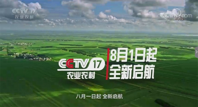 CCTV-17農(nóng)業(yè)農(nóng)村頻道2019年8月1日開播