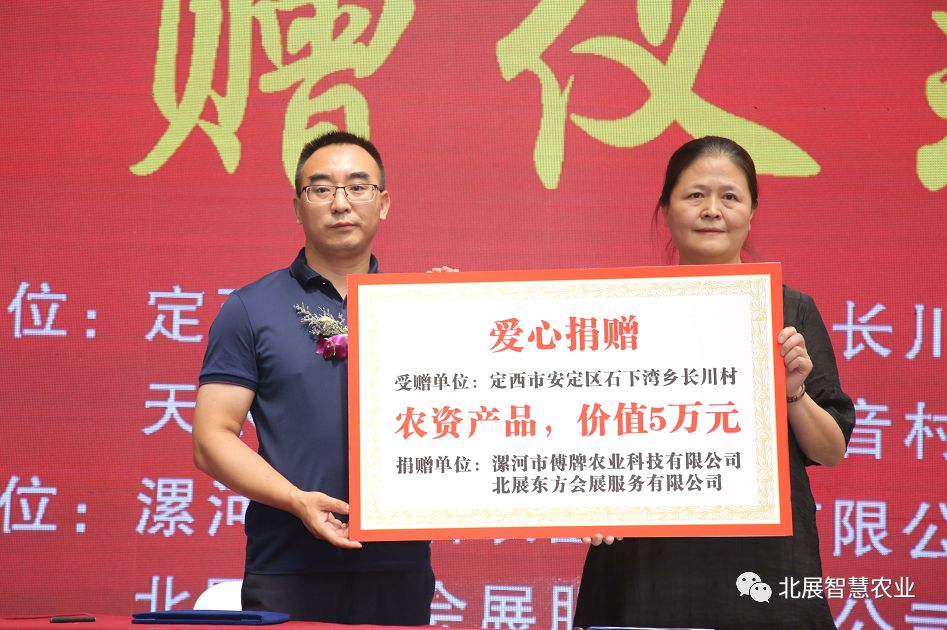 論壇同期還舉辦了公益扶貧項目捐贈活動。漯河市傅牌農(nóng)業(yè)科技有限公司出資10萬元對定西市安定區(qū)石下灣鄉(xiāng)長川村、天水市清水縣山門鎮(zhèn)觀音村農(nóng)資設施進行捐贈。漯河市傅牌農(nóng)業(yè)科技有限公司董事長傅世平、甘肅省廣播電視大學扶貧辦公室主任李軍、甘肅省自然能源研究所幫扶主任(駐定西市安定區(qū)石下灣鄉(xiāng)長川村第一書記)馮小云先生上臺進行捐贈儀式。
